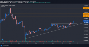 ترون در ۳ ماهه صعودی خود پس از اعلام آقای جاستین سان مبنی بر تاریخ رونمایی از ترون ۴ میباشد.