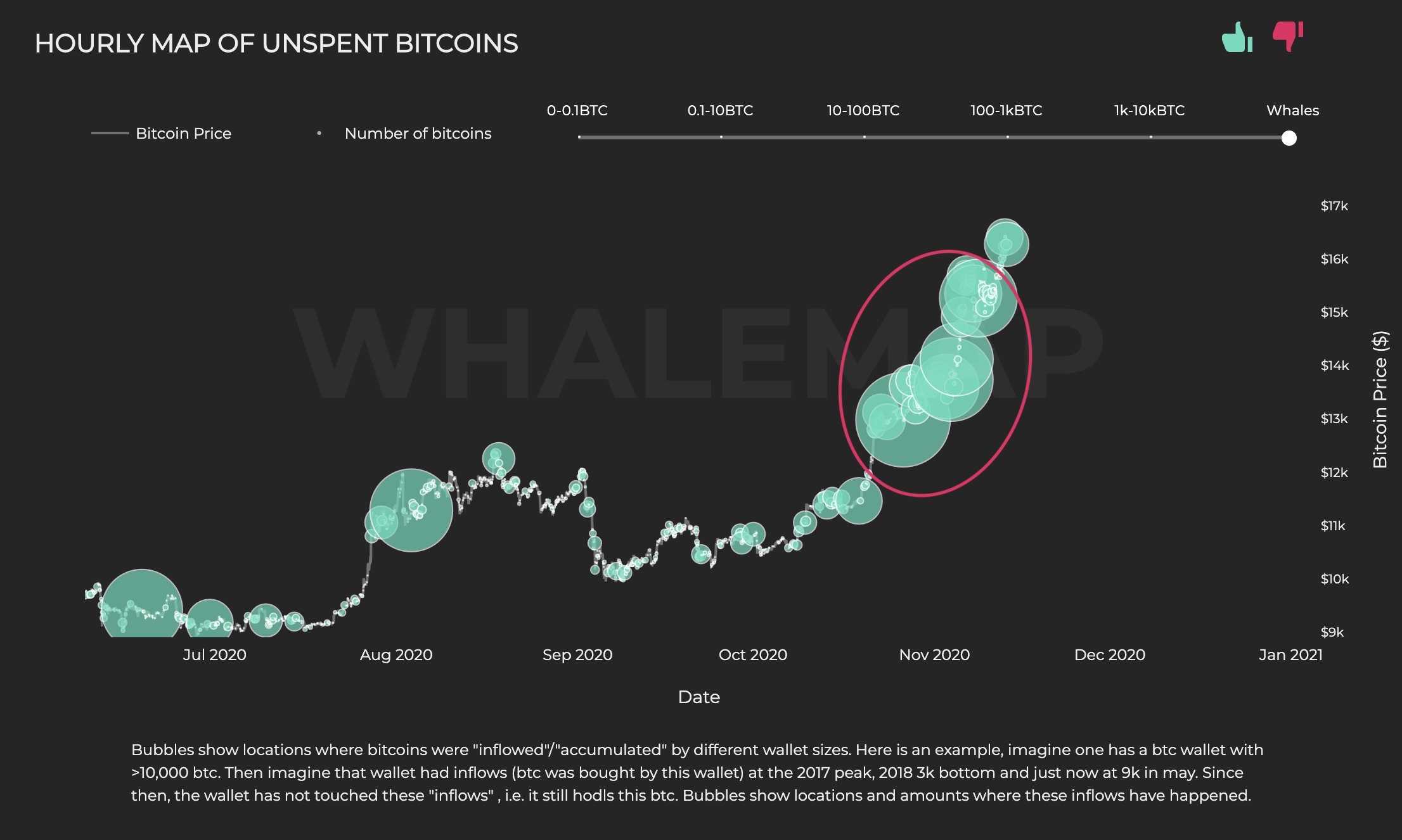 آنگونه که از شواهد بر می آید، زمانی که قیمت بیت کوین در بازه 12000 تا 15000 دلار بود، سازمان ها به شدت این ارز را انباشته کرده اند و طبق ادعای یکی از تحلیلگران Whalemap، این یک ترند مثبت است زیرا نهادها و نهنگ ها به طور معمول درحالی نسبت به انباشت دارایی ها اقدام می کنند که یک استراتژی سرمایه گذاری بلند مدت در ذهن دارند.