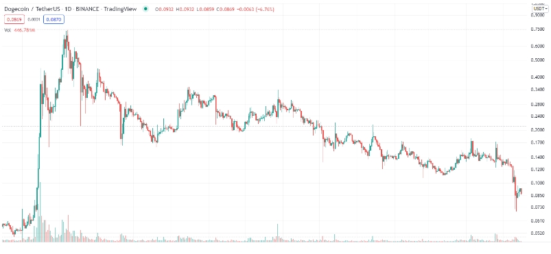 دوج کوین به عنوان یک عضو تمام عیار از نخبگان ارزهای دیجیتال از این سرنوشت در امان نماند و تقریباً بزرگترین افت هفتگی خود را با بیش از ۴۰٪ ریزش تجربه کرد.