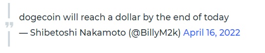 خالق یکی از محبوبترین میم کوینهای بازار، بیلی مارکوس (Billy Markus) که با نام شیبتوشی ناکاموتو نیز شناخته میشود، در توییتی جنجالی، یک پیشبینی طنزآمیز از قیمت دوج کوین به اشتراک گذاشت و برخی از سرمایهگذاران DOGE را برای مدتی امیدوار کرد.