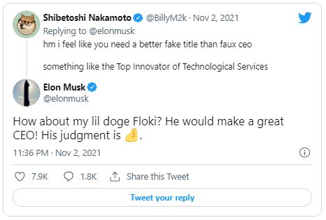 ماسک در ادامه توئیت کرد که فلوکی(Floki)، سگ شیبا اینو(Shiba Inu) او نیز کار بزرگی انجام خواهد داد: