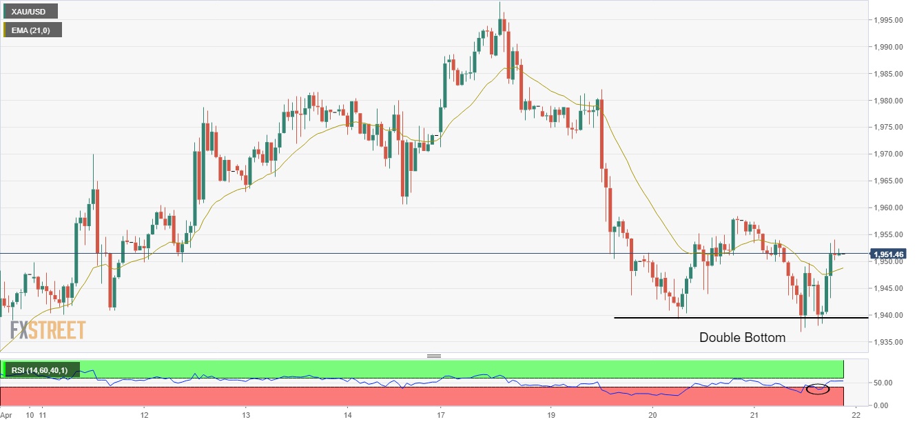 از منظر تکنیکال، در مقیاس ساعتی، XAU/USD یک الگوی کف دوقلو را تشکیل میدهد که نشاندهنده بازگشتی صعودی با توجه به حجم پایین معاملات فروش و لمس مجدد کف بحرانی قیمت می باشد. پس از لمس مجدد پایین ترین سطح قیمت روز چهارشنبه در حدود 1939.31 دلار، قیمت طلا شاهد افزایشی محض بوده است. شاخص مقاومت نسبی(RSI) هنوز به محدوده نزولی 20.00-40.00 سقوط نکرده است. قیمت نیز بالاتر از میانگین متحرک نمایی 20 (EMA) قرار گرفته است که نشان دهنده احتمال رشد در آینده است.