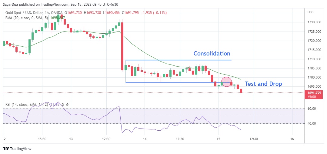 قیمت طلا پس از شکستی نزولی در مرحله تحکیم در محدوده 1697.12 تا 1709.62 دلار ، شاهد افت شدیدی بوده است. اکنون فلز زرد پایین تر از میانگین متحرک نمایی 20 دوره ای (EMA) در تراز 1698.70 دلار معامله می شود و خط روند نزولی روزانه در حدود 1693 دلار را تست می کند.