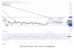 نمودار 4 ساعته نشان می دهد که عمل قیمت در حال فشرده شدن است. اگرچه گاوها قیمت را به بالای 20-EMA رساندند، اما در 50-SMA با مقاومت سختی روبرو هستند که نشان می دهد که خرس ها در سطوح بالاتر فعال هستند.