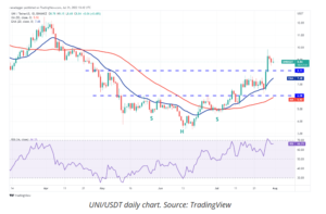 برعکس، اگر قیمت کاهش یابد و به زیر 8.11 دلار برسد، جفت ارز UNI/USDT میتواند تا میانگین متحرک نمایی 20 روزه (7.48 دلار) کاهش یابد. شکست و بسته شدن به زیر این سطح نشان می دهد که حرکت صعودی ضعیف شده است.