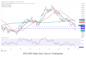 بیت کوین (BTC) در 21 ژانویه(1 بهمن) نزدیک به 34000 دلار سقوط کرد که نشان دهنده کاهش 50 درصدی از 69000 دلار، بالاترین قیمت تاریخ نوامبر 2021 (آبان 1400)است. ارزش کل بازار کریپتو به 1.6 تریلیون دلار رسید که 46 درصد کاهش نسبت به بالاترین رقم تاریخی خود در نوامبر 2021 نزدیک به 3 تریلیون دلار نشان می دهد.