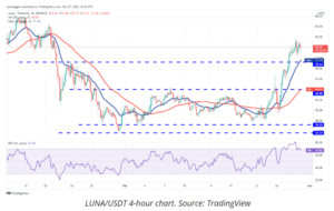 LUNA پس از شکستن و بسته شدن بالای خط روند نزولی، شتاب صعودی گرفت. خرید قوی، قیمت را به بالاتر از مقاومت در 70 دلار در 25 فوریه(6 اسفند) رساند.