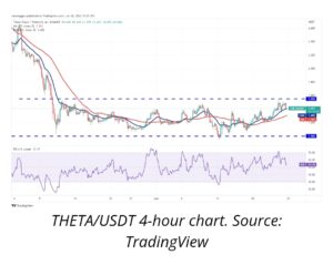 هر دو میانگین متحرک در آستانه تکمیل یک کراس اوور یا تقاطع صعودی هستند و RSI در محدوده مثبت قرار دارد. اگر خریداران قیمت را به بالای 1.55 دلار ببرند، شروع یک حرکت صعودی جدید را پیشنهاد می کند. سپس جفت ارز THETA/USDT می تواند به هدف الگوی 2.10 دلار برسد.